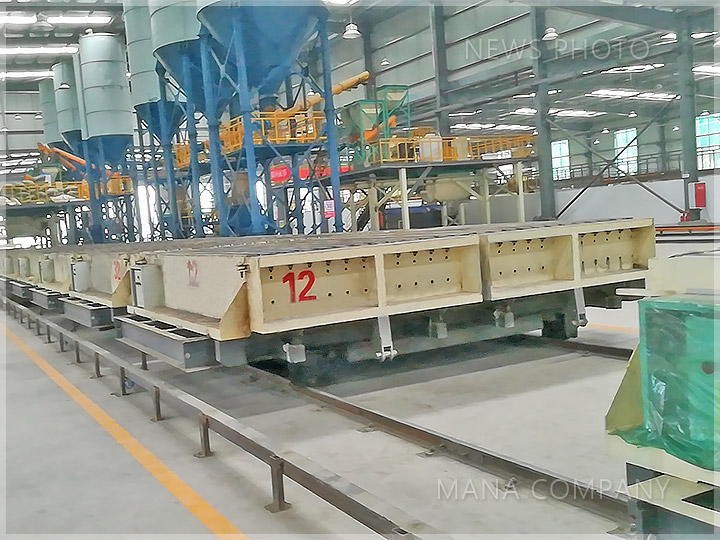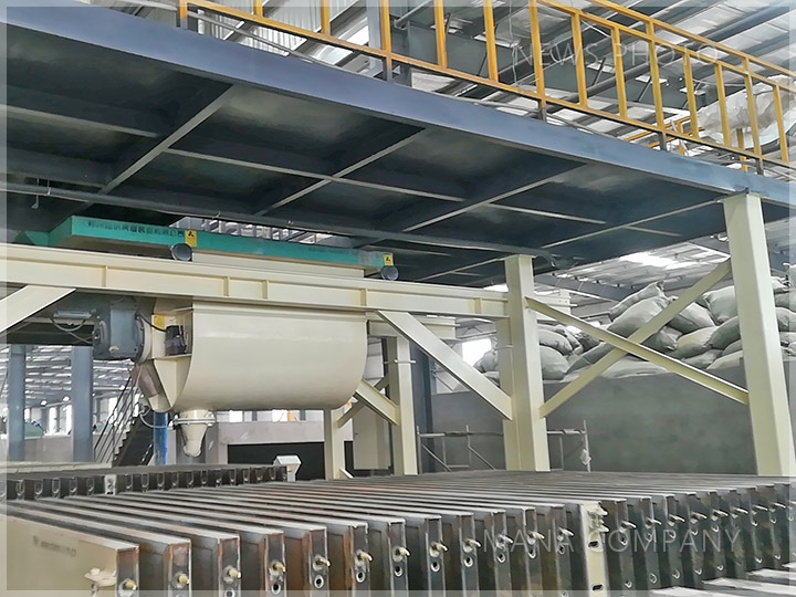 客戶現(xiàn)場(chǎng)-100板 24塊/模-發(fā)泡水泥墻板生產(chǎn)線-自動(dòng)布料機(jī)