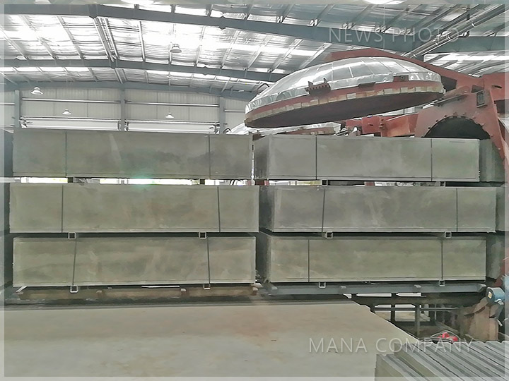 客戶現(xiàn)場(chǎng)-100板 24塊/模-發(fā)泡水泥墻板生產(chǎn)線-養(yǎng)護(hù)好的輕質(zhì)條板